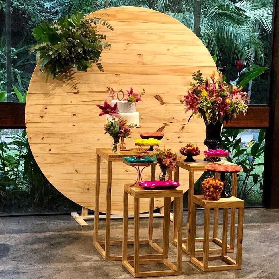 Dimensões: 40 (A) x 40 (L) x 40 (C) cm Quantidade: 01 unid. Material: madeira pinus ATENÇÃO: Não é permitido usar pregos, grampos ou parafusos na frente do painel. Havendo necessidade de prender qualquer objeto, utilizar fita 3M transparente. Esta peça NÃO deve ser utilizada em local úmido ou em contato direto com água. O painel não foi projetado para ser utilizado em local com vento.